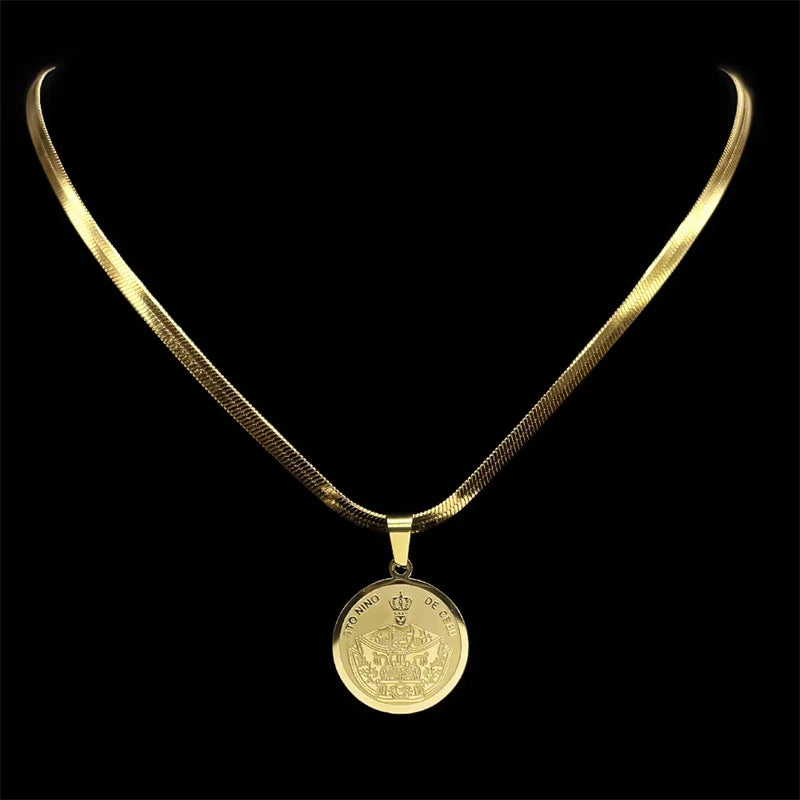 Celebrate your devotion to the Sto. Niño de Cebu with the elegant Cebuano Niño Necklace. Designed in high-quality stainless steel, this necklace is non-tarnish, hypoallergenic, and perfect for sensitive skin. The Sto. Niño represents faith, protection, and blessings, making this necklace an ideal keepsake for you or a loved one.